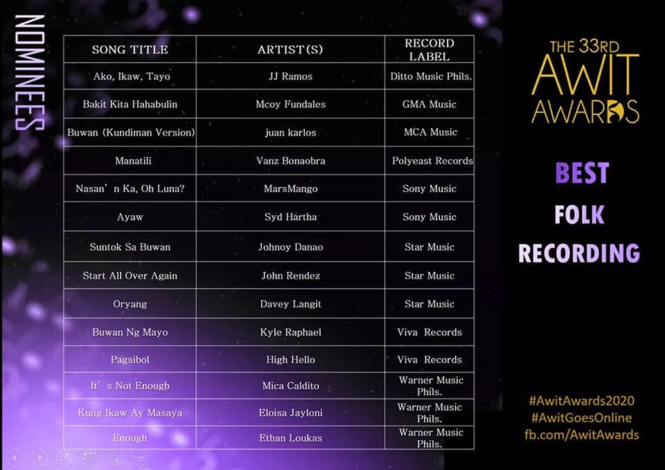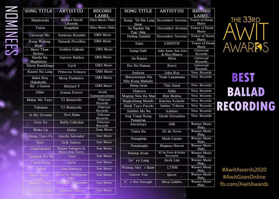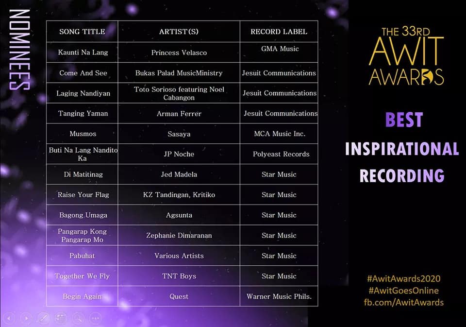 We are one in congratulating our very own Mindanaoan artists on their respective nominations to the prestigious 33rd Awit Awards!