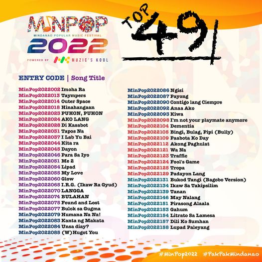 From over a couple hundred entries, we’re down to our first cut. Congratulations to everyone who made it to MinPop 2022’s Top 49!We also express our appreciation to everyone who sent in their entries. Thank you for being part of this year’s awesome batch! On to the next cut! Please wait for the next announcement